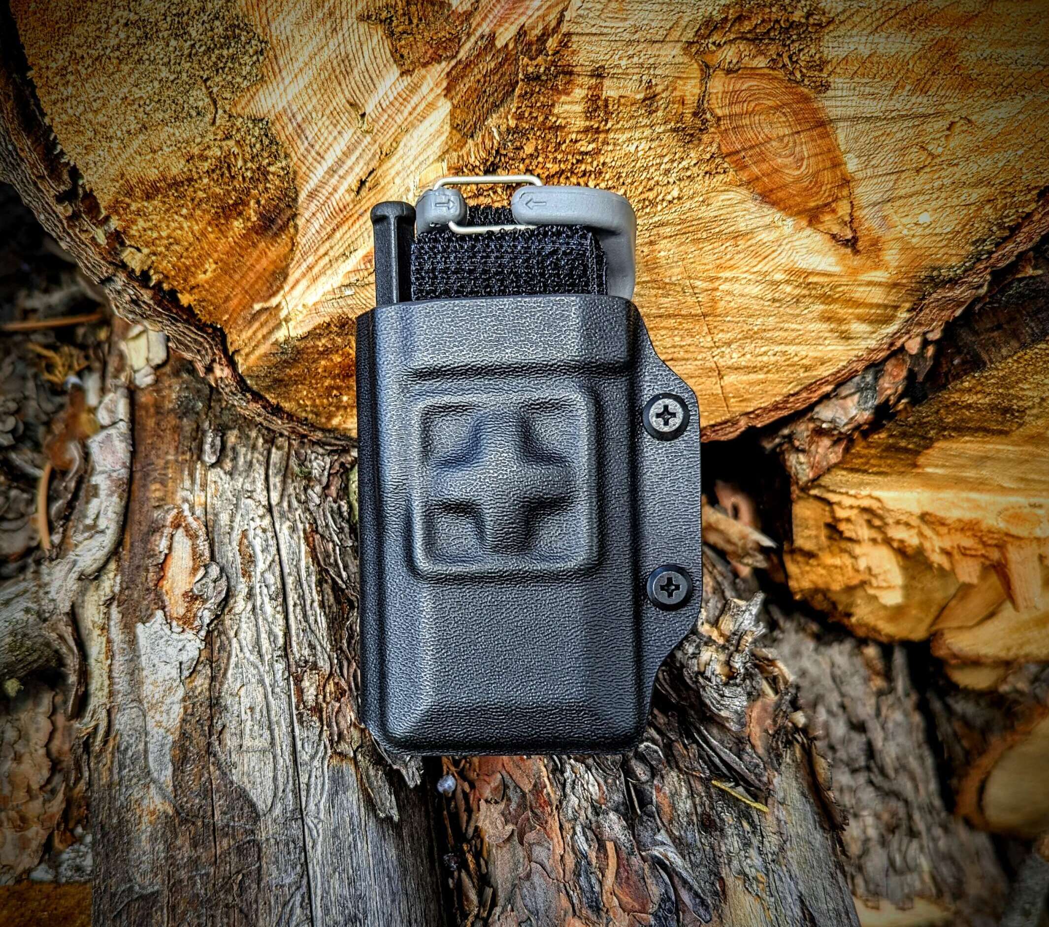 This carrier for the Snakestaff Systems ETQ Wide is designed with durability and functionality in mind and provides reliable carry for inside/outside waistband and more.